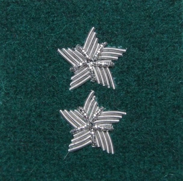 Stopień na beret starszego chorążego, używany przez jednostki wojsk lądowych. Wykonany na suknie w kolorze zielonym.