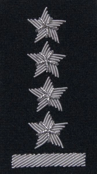 Stopień na beret kapitana, używany przez jednostki pancerne. Wykonany na suknie w kolorze czarnym.