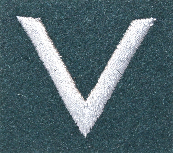 Stopień na beret w kolorze zielonym, przeznaczony dla sierżanta. Używany w jednostkach Wojsk Lądowych. Haft wykonano techniką komputerową nicią w kolorze popiel na suknie w kolorze zielonym. Dystynkcja ma wymiary 3,9 cm x 4,2 cm.Stopień na beret Wojska Polskiego, zielony - sierżant