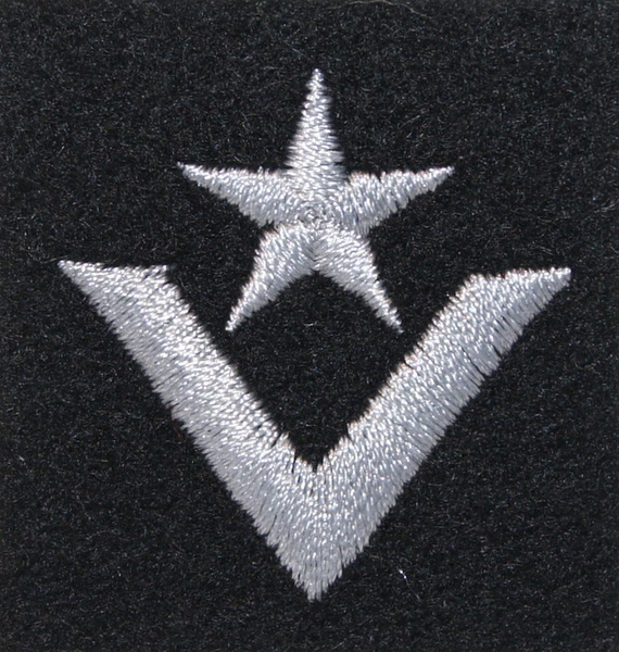 Stopień na beret w kolorze czarnym, przeznaczony dla młodszego chorążego, to stylowy element umundurowania używany w jednostkach pancernych. Haft wykonano techniką komputerową nicią w kolorze popiel na suknie w kolorze czarnym. Otok ma wymiary 4 cm x 4 cm.