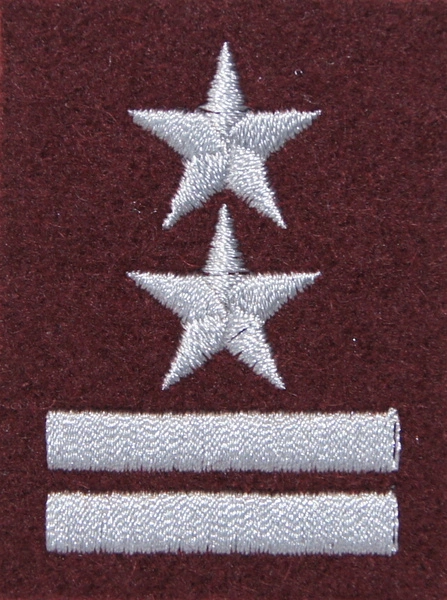 Stopień do furażerki w kolorze bordowym, wykonany metodą haftu komputerowego.