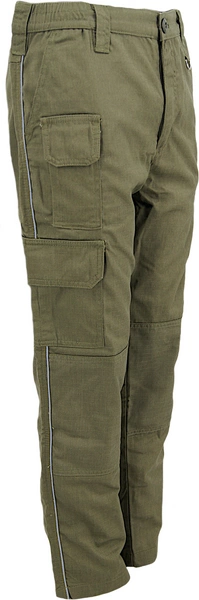 Profesjonalne spodnie służbowe zaprojektowane z myślą o wymaganiach funkcjonariuszy Straży Granicznej. Wykonane z odpornej na zużycie tkaniny drelichowej w kolorze oliwkowym, zapewniają wygodę, trwałość i funkcjonalność podczas codziennej służby terenowej.