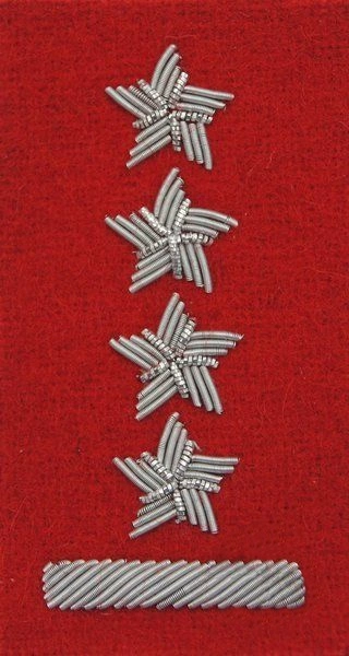 • Symbol stopnia: cztery gwiazdki nad szerokim paskiem