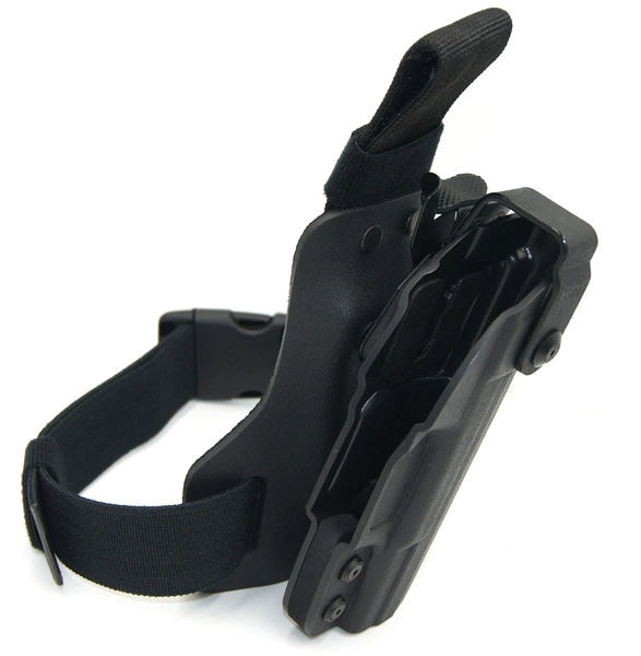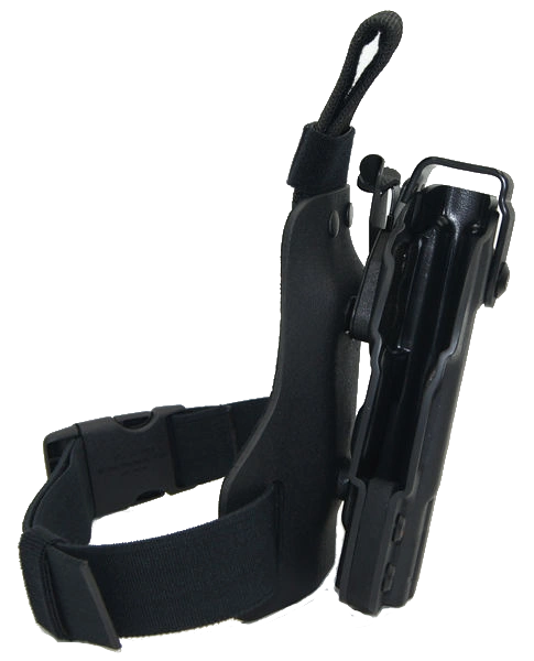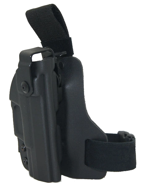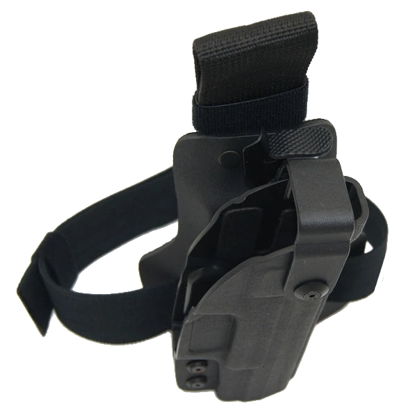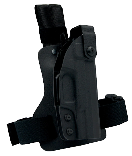 Profesjonalna kabura taktyczna z obniżonym stanem noszenia pas-udo. Idealna dla służb wyposażonych w kamizelki taktyczne lub kuloodporne.
