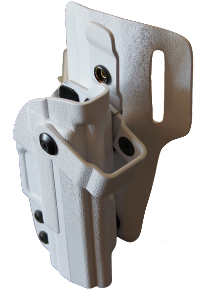 Profesjonalna kabura na pas BLAK-HARRIER SSS2007 do pistoletu Walther P99 - przeznaczona dla Policjantów Ruchu Drogowego lub Żandarmerii Wojskowej. Kabura wykonana z tworzywa Kydex w kolorze białym.