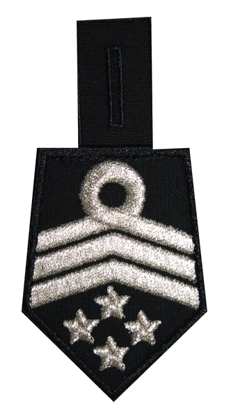 - Trzy srebrne pasy i cztery gwiazdy - symboliczne oznaczenie stopnia prezesa zarządu.