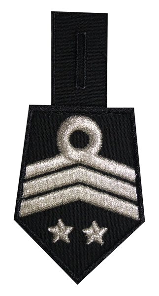 - Trzy srebrne pasy i dwie gwiazdy - symboliczne oznaczenie stopnia członek prezydium zarządu.