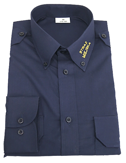 Koszula granatowa Straż Miejska to profesjonalny element umundurowania dla funkcjonariuszy Straży Miejskiej, zapewniający wysoki komfort noszenia, elegancki wygląd i trwałość w codziennej służbie.