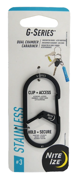 Nite Ize G-Series Dual Chamber Carabiner 3 w kolorze czarnym to innowacyjny karabińczyk wykonany z wytrzymałej stali nierdzewnej, który dzięki unikalnej konstrukcji z podwójną komorą zapewnia maksymalne bezpieczeństwo i komfort użytkowania. Idealny do codziennego przenoszenia kluczy, narzędzi i akcesoriów EDC.