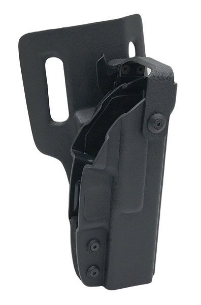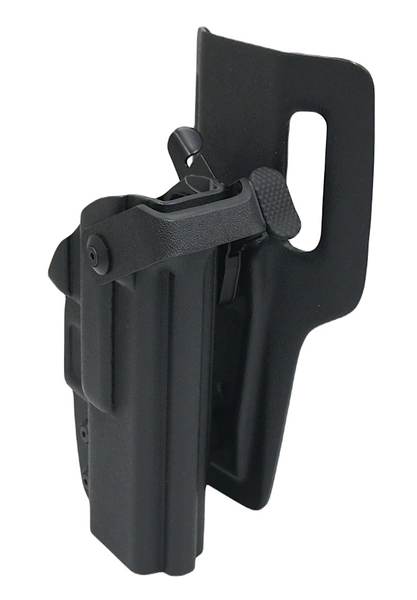 - Blokada podspustowa - zatrzaskowa: tak. Gwarantuje bezpieczeństwo i stabilność broni, uniemożliwiając przypadkowe wyjęcie pistoletu z kabury.