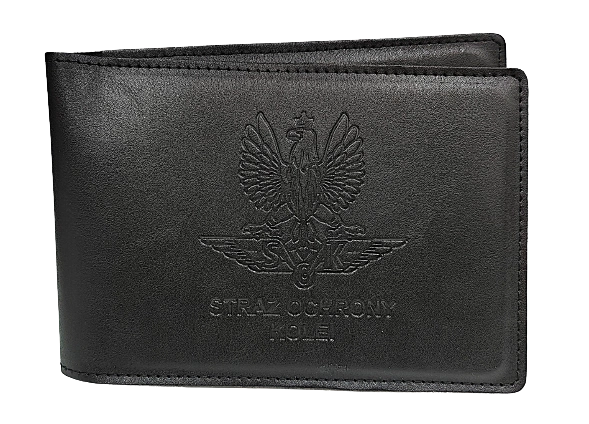 Logo SOK wykonane metodą tłoczenia co sprawia, że jest ono bardzo widoczne i nie ulega zniszczeniu nawet w trakcie długotrwałego użytkowania. Od wewnętrznej strony wszyta folia przytrzymująca legitymację, odporna na warunki atmosferyczne (nie pęka podczas mrozu). Z tyłu etui na legitymację Straży Ochrony Kolei znajduje się dodatkowa kieszonka np. na uprawnienia do prowadzenia pojazdów służbowych.