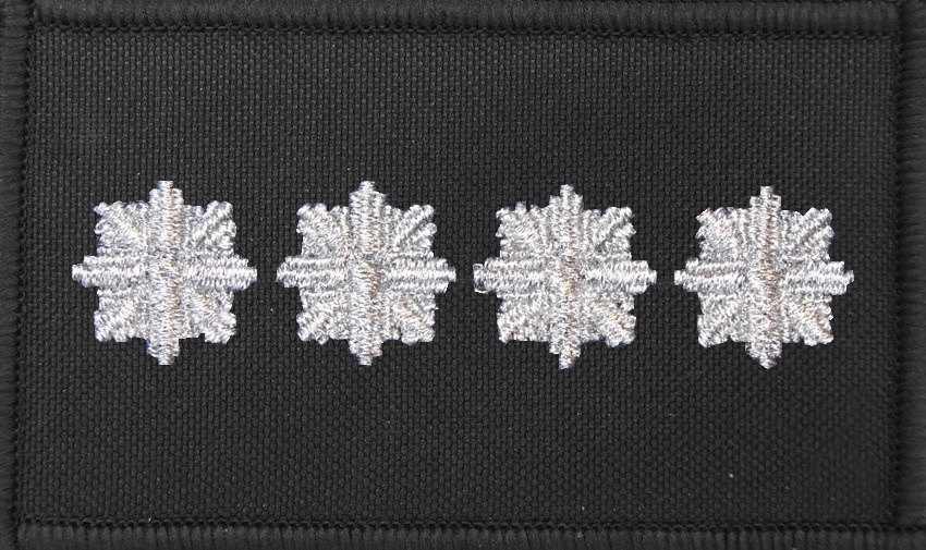 Oznaczenie stopnia wykonano metodą haftu komputerowego, nicią srebrną metalizowaną.