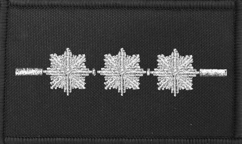 Oznaczenie stopnia wykonano metodą haftu komputerowego, nicią srebrną metalizowaną.