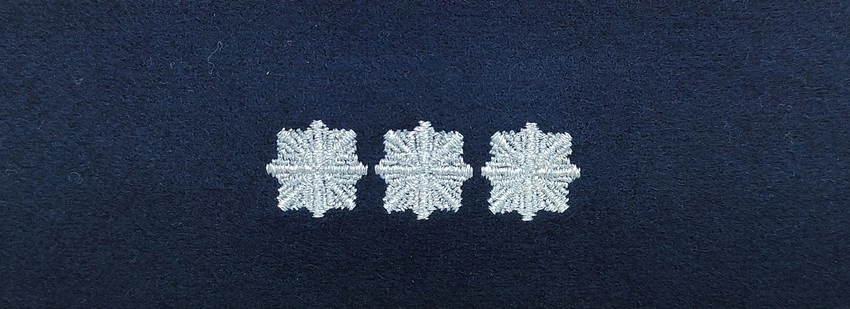 • Precyzyjny haft - oznaczenie stopnia wykonane techniką haftu komputerowego z nicią srebrną metalizowaną.