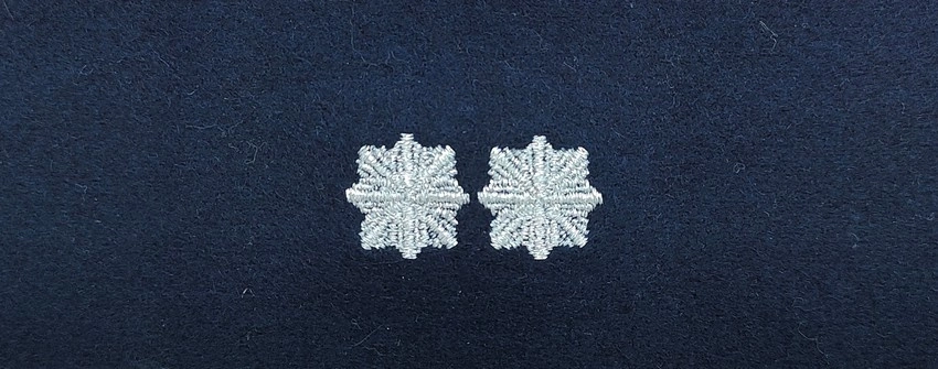 - Precyzyjny haft - oznaczenie stopnia wykonane techniką haftu komputerowego z nicią srebrną metalizowaną.