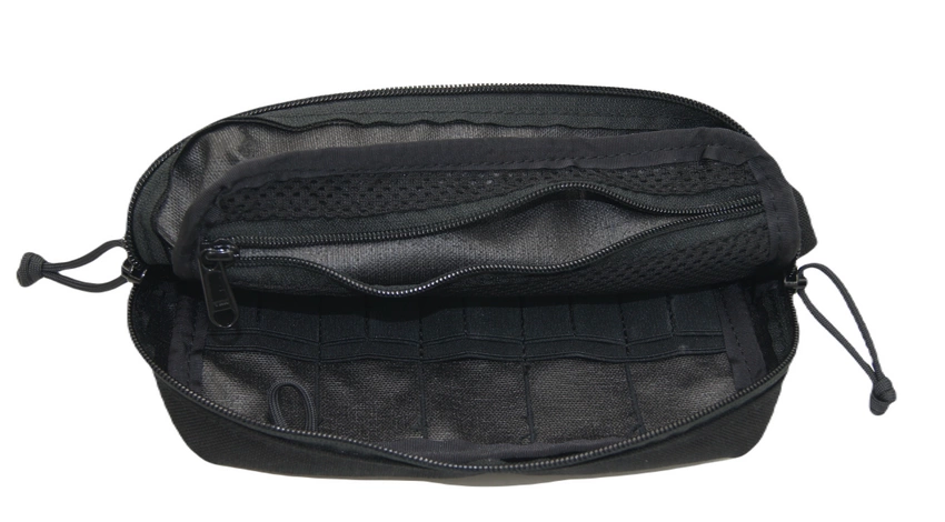 Organizer, panel administracyjny poziomy to niezbędny element wyposażenia każdego żołnierza czy pasjonata outdooru, który potrzebuje praktycznego systemu organizacji podczas misji czy codziennych zadań. Z przodu znajduje się kieszonka zamykana na wytrzymały zamek wszyty po skosie, idealna do przechowywania drobnych przedmiotów. Panel rzep Alfatex® marki VELCRO® na taśmach w systemie molle umożliwia swobodne zamocowanie i zagospodarowanie naszywkami lub innymi akcesoriami. Dodatkowe gumki po bokach umożliwiają przenoszenie długopisów, lightsticków, krzesiw i innych niezbędnych narzędzi. Wewnątrz organizera znajduje się kolejna kieszeń zamykana na zamek, wyposażona w siatkę, dzięki której łatwo można zobaczyć zawartość. Na kieszonce wewnętrznej znajduje się guma tworząca przegródki, idealna do segregacji mniejszych przedmiotów. Po drugiej stronie organizera umieszczono kolejną kieszonkę siatkową oraz organizer gumowy, zapewniając dodatkowe miejsce na przechowywanie. Z tyłu organizera znajduje się płaska kieszeń zamykana na zamek, z trzema taśmami 25mm, umożliwiającymi montaż na systemie M.O.L.L.E., do pasa itp. Dodatkowo na samym dole znajduje się D-ring do powieszenia ładownicy lub zaczepienia zawieszek, kluczy czy wisiorków. Wykonany z trwałych materiałów, takich jak cordura 1000D / 500D, taśmy Pasamon i elementy plastikowe ITW NEXUS, organizer zapewnia niezawodność i funkcjonalność w każdych warunkach.