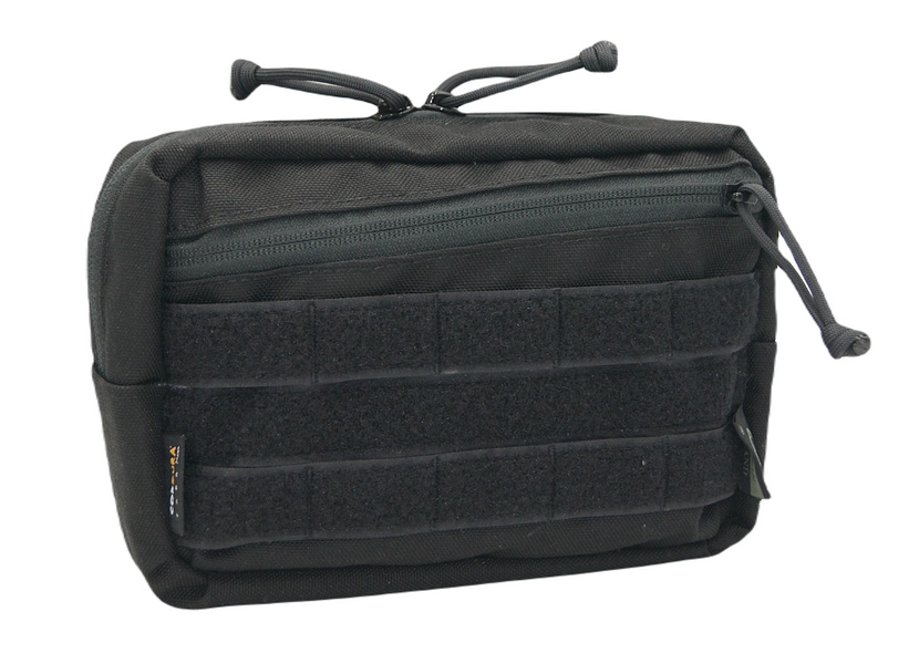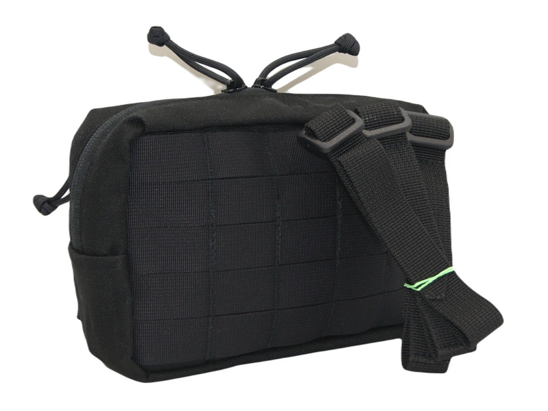 - Płaska kieszeń zamykana na zamek z tyłu, z trzema taśmami 25mm umożliwiającymi montaż ładownicy na M.O.L.L.E., do pasa itp.