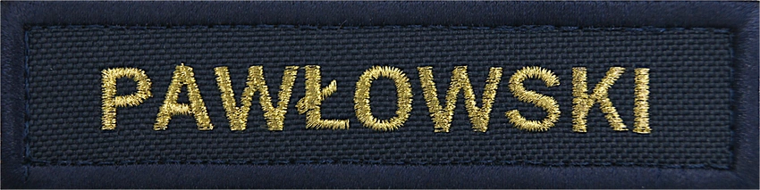 Spersonalizowany identyfikator imienny dedykowany dla żołnierzy Marynarki Wojennej RP. Naszywka haftowana, w kolorze granatowym, przystosowana do noszenia na ubiorze ćwiczebnym dzięki solidnemu mocowaniu na rzep.