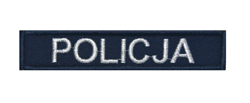 Naszywka granatowa z napisem Policja.