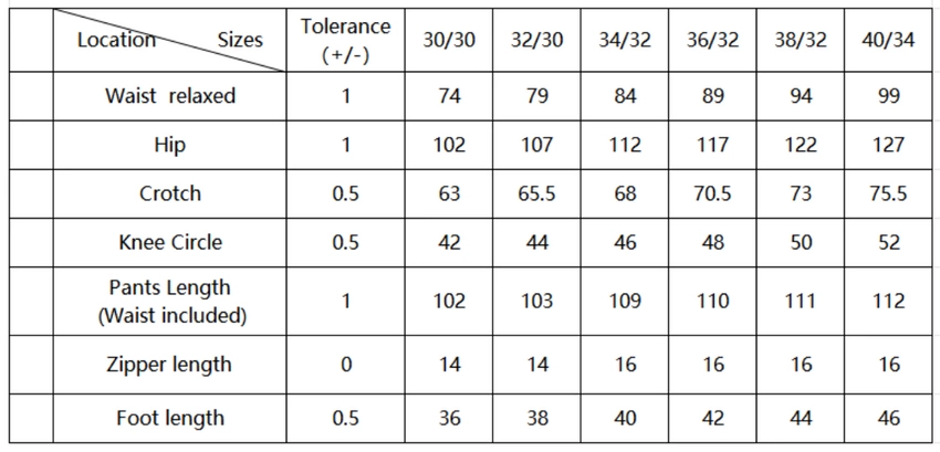 | W34/L32 | 84 | 112 | 109 | 46 |
