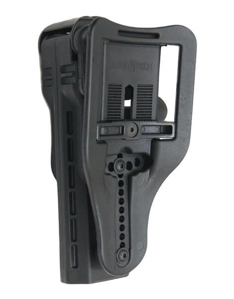 Uchwyt na pas umożliwia regulację szerokości w zależności od użytego pasa. Można również regulować kąt ułożenia kabury. Model tej kabury sprawia, że pistolet jest bardzo bezpiecznie przenoszony, praktycznie nie możliwe jest jego wyrwanie czy niechciane wyciągniecie. W potrzebie natomiast bardzo intuicyjnie i szybko można po nią sięgnąć.