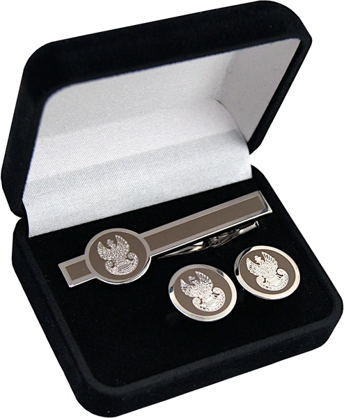 • Spinki do koszuli – wykonane z wysokogatunkowej stali w kolorze niklu, ozdobione wizerunkiem orła w okręgu w kolorze khaki. Symbol siły i oddania Wojskom Lądowym.
