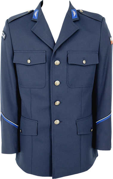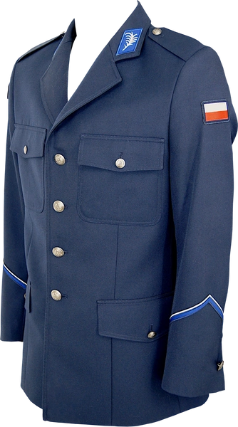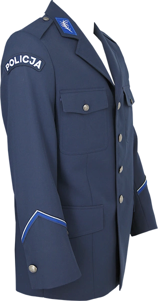 Kurtka męska Policji do nowego munduru wyjściowego. Uszyta z tkaniny wełniano-poliestrowej, jednorzędowo zapinania na cztery metalowe guziki z orłem.