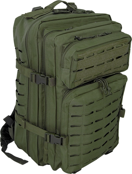 • Laserowo wycinany system MOLLE – nowoczesny system mocowania dodatkowego oporządzenia i kieszeni, zapewniający lekkość i trwałość