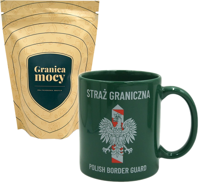ZESTAW: Kawa mielona lub ziarnista dedykowana funkcjonariuszom Straży Granicznej i Kubek zielony - Straż Graniczna
