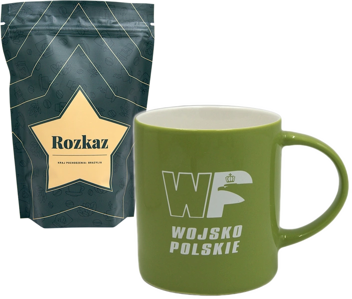 ZESTAW: Kawa mielona lub ziarnista dedykowana żołnierzom SZRP i Kubek zielony z logo WP
