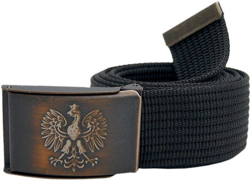 Pasek parciany – czarny z klamrą w kolorze antyczna miedź (z orłem)