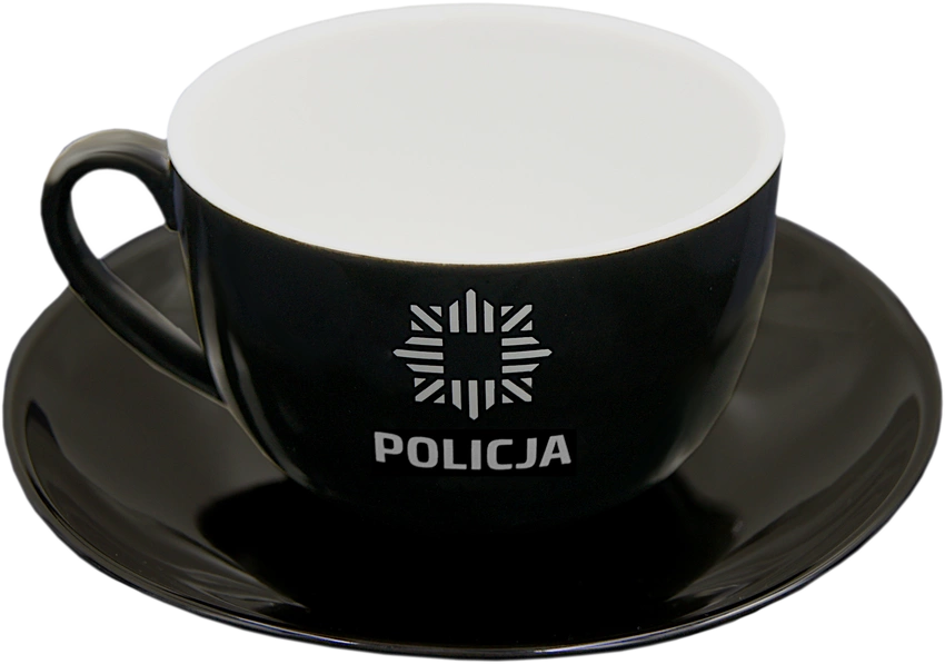 Filiżanka ze spodkiem czarna - Policja (1 szt.)