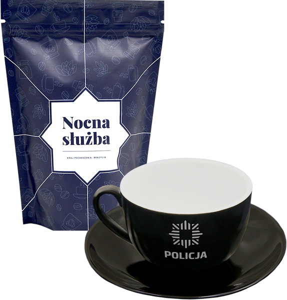 ZESTAW: Kawa mielona lub ziarnista dedykowana funkcjonariuszom Policji i Filiżanka ze spodkiem czarna - Policja